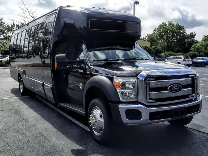 27 passenger mini bus with a TV and Sound System. Overhead and rear luggage compartment. Cleaning fees are included. Additional fees may apply.