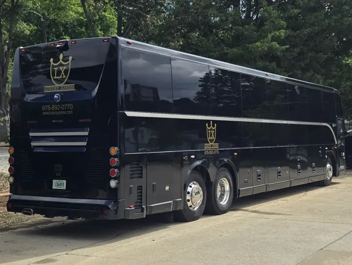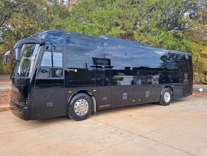 40 passenger charter bus with TV’s and Sound System. Overhead and underbelly luggage compartment. Cleaning fees are included. Additional fees may apply.